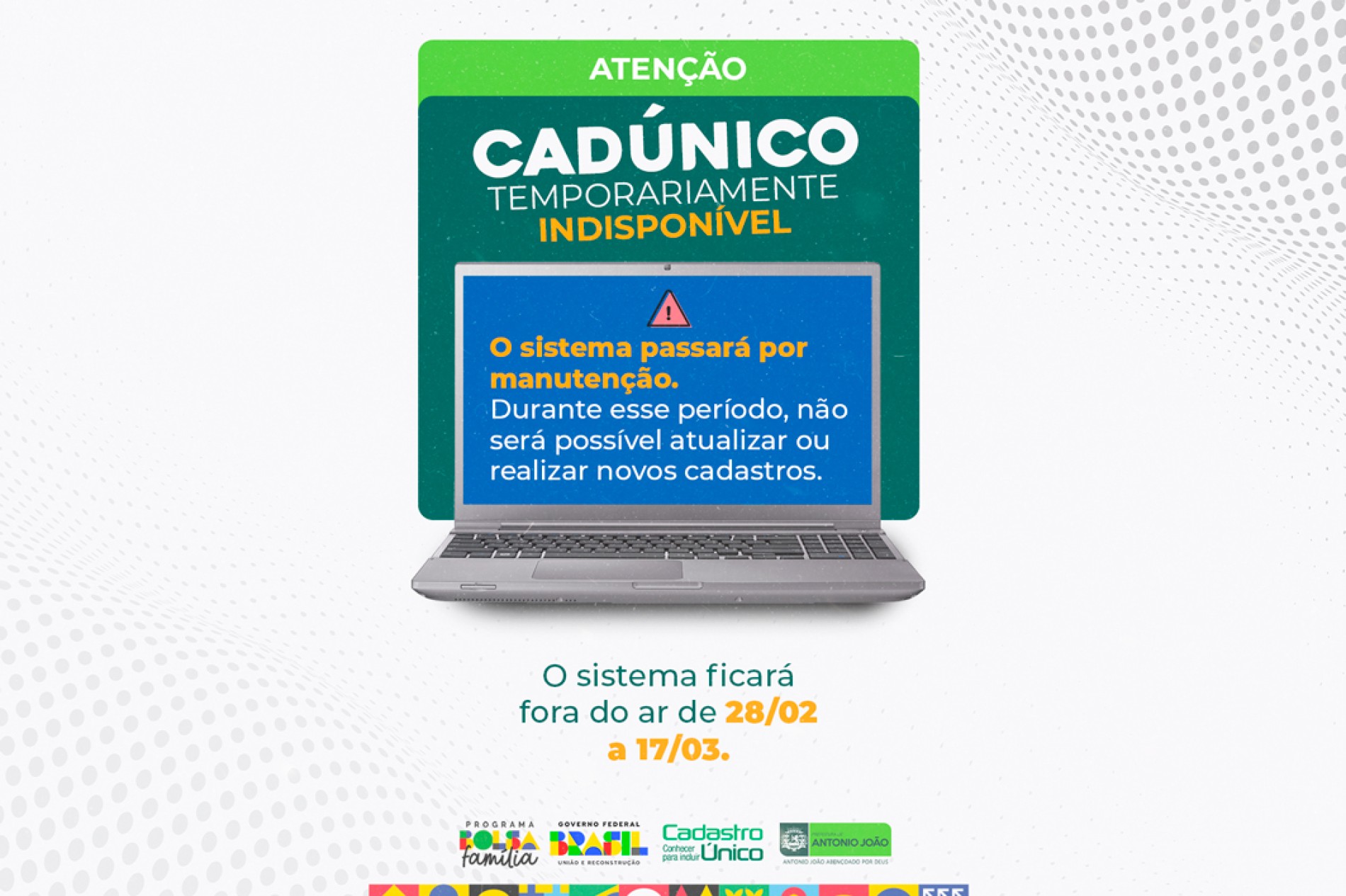 Prefeitura de Antônio João Informa: CadÚnico Fica Temporariamente Indisponível para Manutenção
