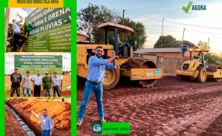 Antonio João passa por um momento especial. A cada dia que se passa avançam as obras de drenagem da Vila Nova, um bairro especial, que a muito tempo esperava por essa conquista. Com a intensificação dos trabalhos, que devem levar mais saneamento básico, espera-se solucionar os problemas antigos da Vila.